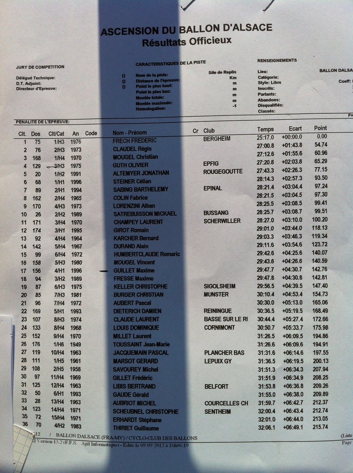 J’ai participé Dimanche 09/09/2012 à la 10 édition du CLM du Ballon par son coté Vosgiens.