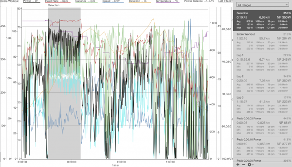 330w sur seulement 20 min me semble une bonne estimation s’il avait fait un test de cette durée à fond. Je m’appuie aussi sur le profil de puissance prédictif de WKO pour m’aider dans ces estimations. Ce merveilleux outil présent depuis 2017 avec la version WKO 4 est un vrai plus dans les analyses.