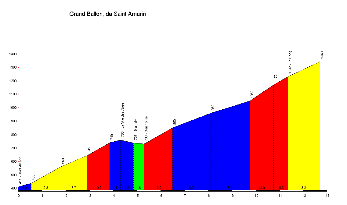 Je redescends coté Saint Maurice sur Moselle pour faire la liaison avec la Vallée de Thann par le petit col de Bussang ( 750 m). Tout de suite je ressens une certaine difficulté à la remise en route et pas habituelle pour seulement 1 h 40 de sortie. Malgré tout les sensations reviennent après 7-8 min et je fini plutôt bien en approchant denouveau souvent les 300 watts. Par contre les pulsations ne montent déjà plus et plafonnent sous 170 puls..pas bon signe. Surtout que je me suis laissé la pire difficulté pour la fin histoire de simuler la dernière montée de la Time par Crest Voland. Je savais qu’il était possible de monter le Grand Ballon par une petite route forestière très bucolique et calme : le col du Haag permettant de cumuler 1000 m de D+ .Ce que je ne savais pas c’était son profil et son état !! Jugé plutôt : des passages à plus de 10 % et une route totalement défoncée pour finir.