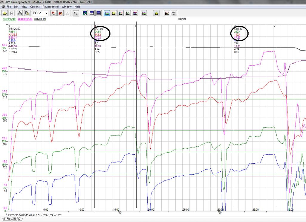 la même vitesse, 6 min @242.4 watts  réalisé 2x !
