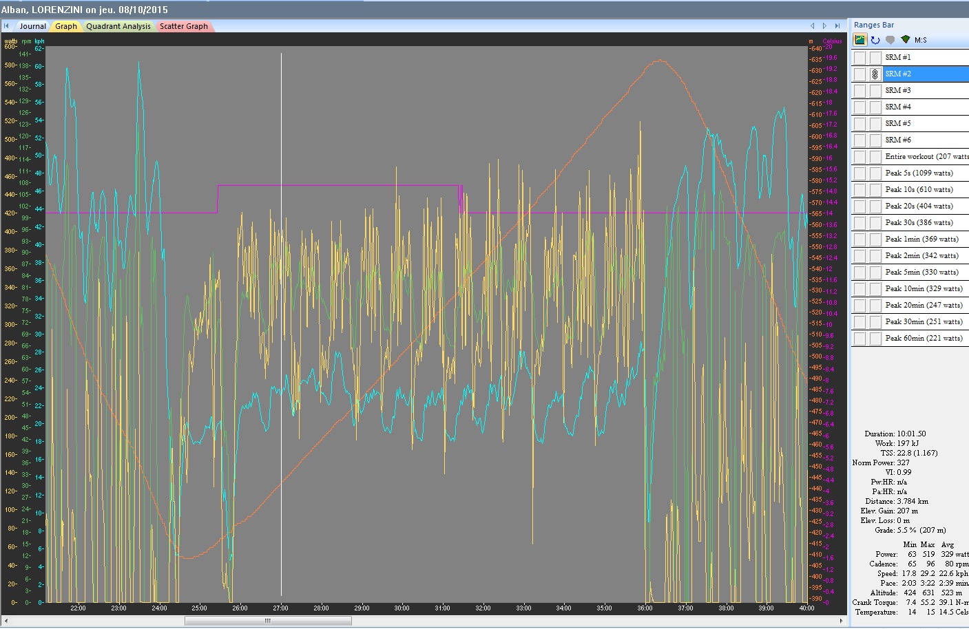 Voici donc ci dessous la comparaison faite avec un powermetre pour confirmer mes impressions