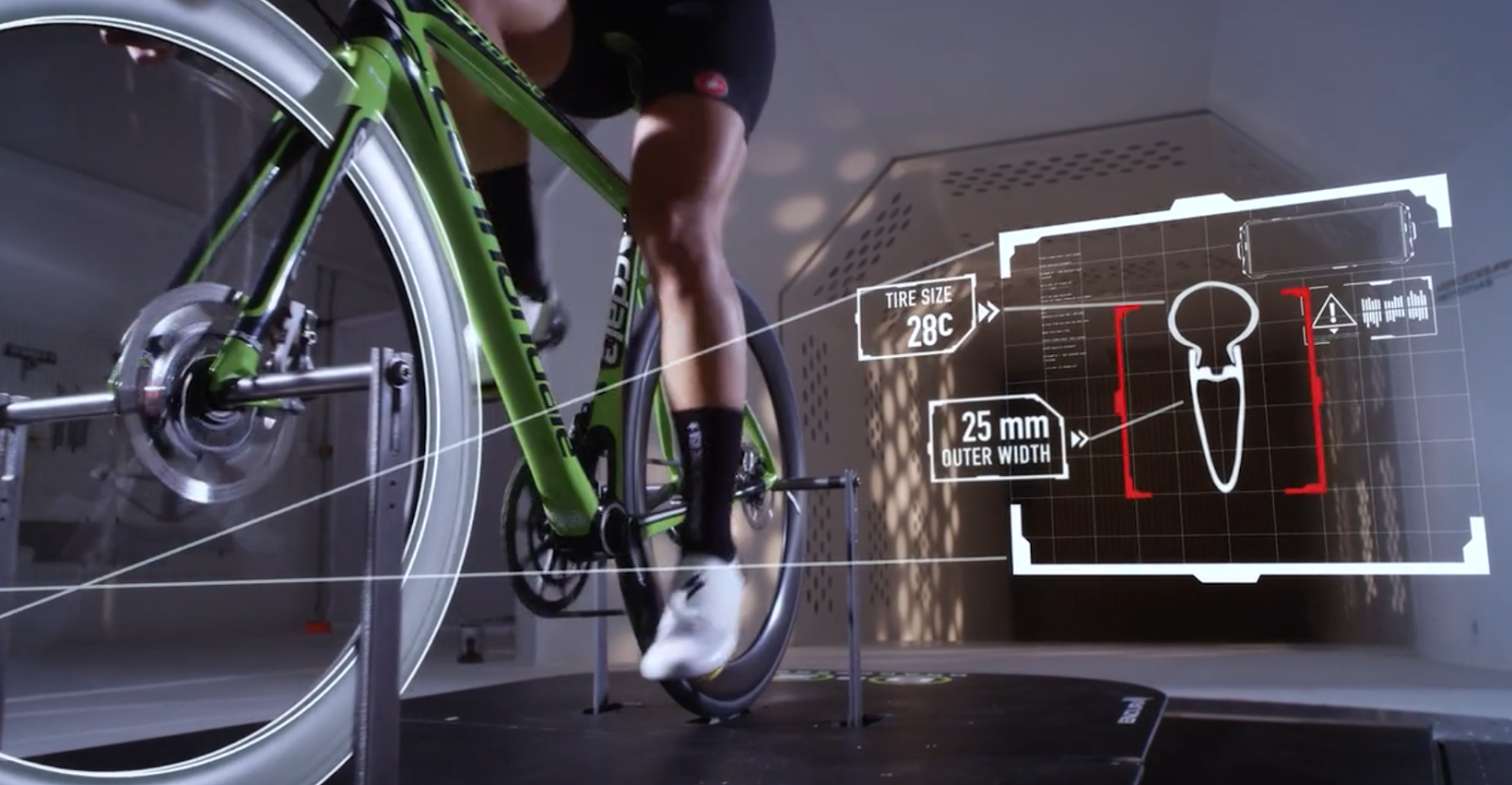 Ce changement ne s’est pas fait sans proposer des modèles de roues absolument pas optimisées pour rouler vite. Je rappel que pour avoir le meilleur compromis roulement/aéro, il faut que le pneu gonflé à la pression d’utilisation optimale pour le coureur doit venir s’approcher au mieux de la largeur externe de la roue.