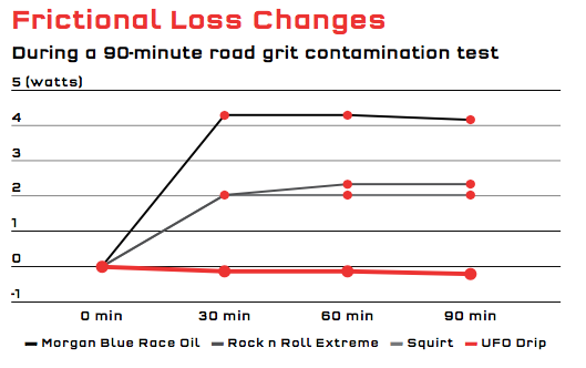 perdent rapidement 2 à 3 watts voir même beaucoup plus ! J’avais moi même un sérieux doute sur l’efficacité du Squirt lub avec des maillons  qui semblaient collés après quelques sorties mais il faut reconnaitre que ce dernier s’en sort très bien face à la concurrence.