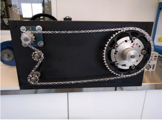 de mesure entraine un plateau de 53 dents à 95 tr/min et applique une charge