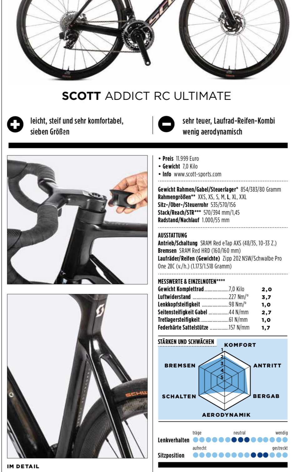 MErci! pour les vélos cités: il y a le cubec68X testé à 211 w avec roues dt 62 mm mais jugé bout de bois et avec un boitier de pédalier pas ultra rigide ( 64 N.mm) donc je l’ai pas retenu. Egalement le Cervelo S3 à 211 w avec roues NOvatec R5 et 209 w avec ZIPP 404, mais là aussi un peu bout de bois…pour les autres ça peut encore arriver en test dans les prochaines editions, c’est long les essais tunnel et couteux. Tu peux consulter leur site et taper en mot clé ‘ windkanal ‘ pour tomber sur des infos aéro comme ici: https://www.tour-magazin.de/service/so_testet_tour/so-testet-tour-die-aerodynamik/a43957.html .MAis sinon il faut acheter leur edition numérique pour avoir ce que je mets dans mes articles.
