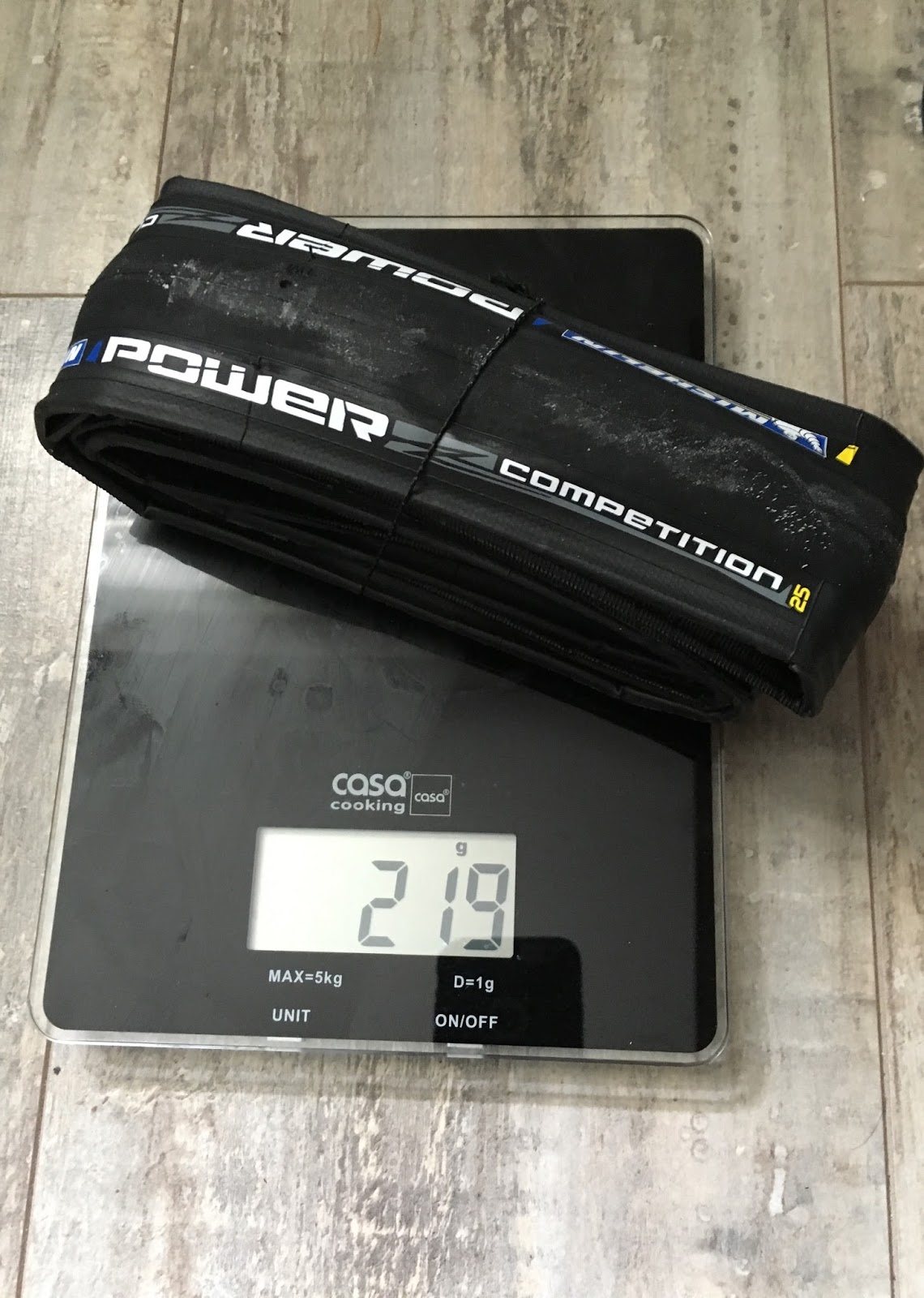 Attention je mets en garde les cyclistes avec ce nouveau Power competition : (j'ai ceux en 23 gonflés à 7bars sur des Ksyrium exalith pro SL)lors d'un tout début de sortie j'ai effectué un demi-tour bien serré à moins de 10km/h et le pneu avant a chassé, j'ai rattrapé la chute de justesse ! ça a tellement glissé facilement que j'ai cru à une flaque d'huile ou de gazoil sur la route, mais non c'était un excellent bitume sec et propre. J'ai aussitôt reproduit un demi-tour quelques mètres plus loin et effectivement le pneu avant dérapait encore. C'est bien la première fois de ma vie de cycliste que je manque de me casser la figure dans un demi-tour à faible vitesse à cause de la glisse du pneu avant ! Je suis très étonné car par ailleurs j'ai été impressionné par l'accroche phénoménale de ces pneus dans une descente rapide avec des virages pris avec beaucoup d'angle en pleine confiance. En fait je pense que ces pneus ont besoin d'un bon "tour de chauffe" (comme pour les courses de Formule1 !) avant de pouvoir accrocher, une fois bien chaud ils sont exceptionnels. Donc attention aux débuts de parcours, pas d'attaque dans les virages en descente et pas de demi-tour sans être vigilant ! Ce que je vous raconte s'est passé une matinée d'été où il faisait déjà 18° alors du coup j'ai un peu des craintes des réactions de ce pneu quand il fera froid en automne/hiver…