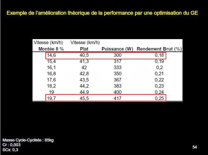 Le cycliste est un piètre convertisseur d’énergie. Pour 1000 w consommés, il en