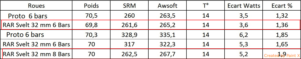 • Oui ils sont vraiment top, je vais essayer de rédiger mon article d'ici fin de semaine. Un peu full en ce moment avec les démarrages de suivis entre décembre et janvier…Si tu vais des tests: SRM obligatoire, route abritée en foret du vent et du soleil, et route seche sous température constante…mon expérience du mois de décembre où j'ai tout de même voulu faire des tests montre qu'une route plus ou moins sous le soleil, plus ou moins humide, des variations de température de 2 degrés….bref conditions qui évoluent même un poil en cours du test fausse les résultats….et bien sur 20/25 km/H max en vitesse sinon aéro fausse aussi mais test au delà de 15 km/H sinon RR trop faible aussi…bref pas simple…