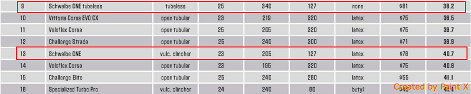 également comparé. A savoir le continental GP TT 23 mm, GP 4000S 2 25 mm et le