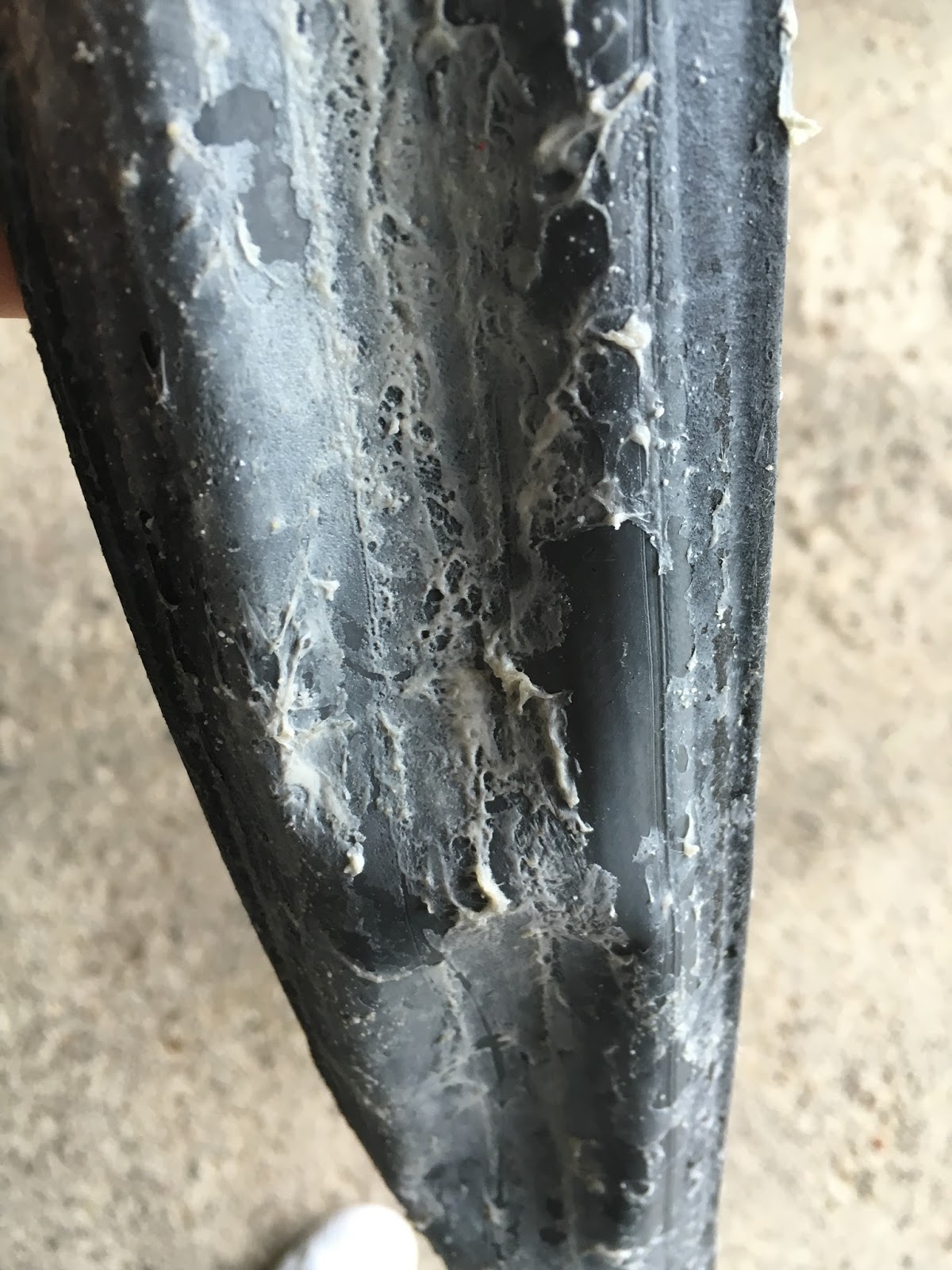 race sealant à l’intérieur du dernier Corsa noir, rien à voir mais finalement assez classique d’un liquide qui a séché…de gros résiduels de latex..