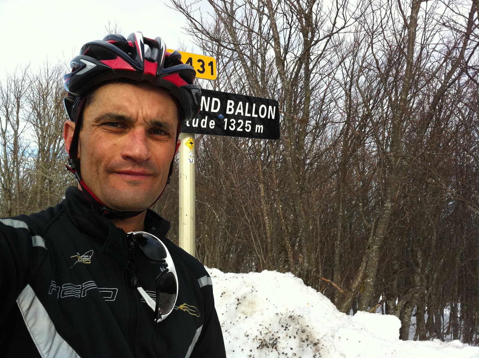 La douceur est enfin revenue sur la région et l’envie de retrouver les montagnes à Vélo a été trop forte en ce vendredi 24/02. 3 mois que je n’avais pas monté de cols mais le bon travail sur HT et les séances spécifiques d’une heure trente à bon régime m’ont rendu confiant pour ce retour. Etant encore dans un cycle de renforcement en force sous max j’ai attaqué la montée du Col Amic depuis Willer sur Thur @270w@50tr/min. Bonne surprise je maintiens assez facilement 280w sur 25 min pour rejoindre le col. Je pousse même en direction du Viel Armand mais à 500 m du col la route n’est pas dégagée et doit faire demi tour. En regardant en direction du Grand Ballon, je me dis que ça doit être sympa d’aller voir les murs de neige. La température de 9 °C à 900 m m’y encourage.