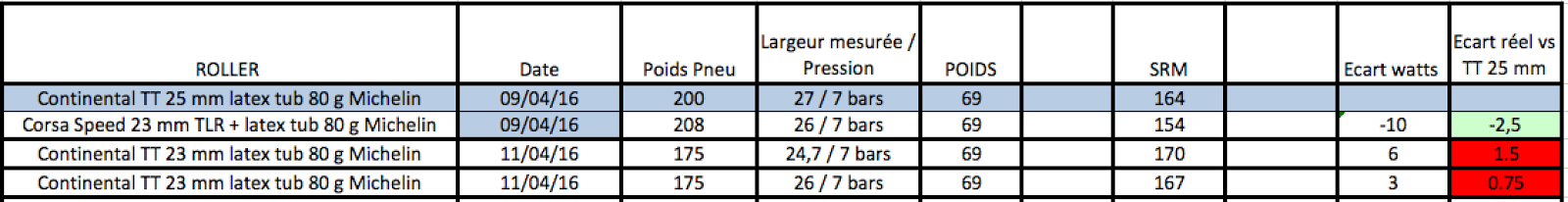 entre TT25 mm et corsa Speed TLR est de 1,2 à 1,3 watts.  C’est très faible…et pourrait être compris