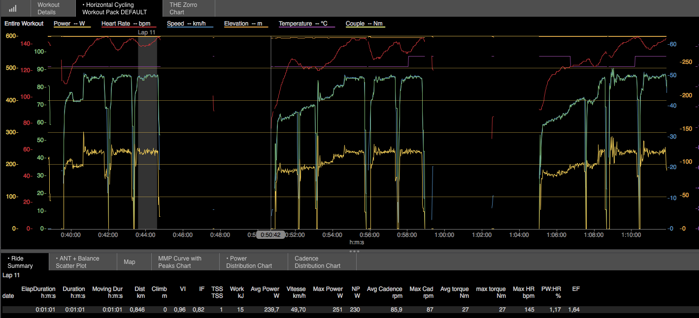 powertap pour mesurer les déperditions par friction ( test à 240 w ). Plusieurs séries