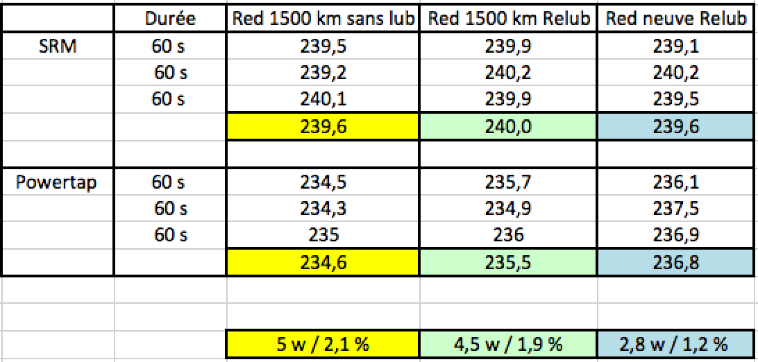 très mauvais par friction fact (10, 27 w sur graph), et relubrification avec du Muc off , un dernier