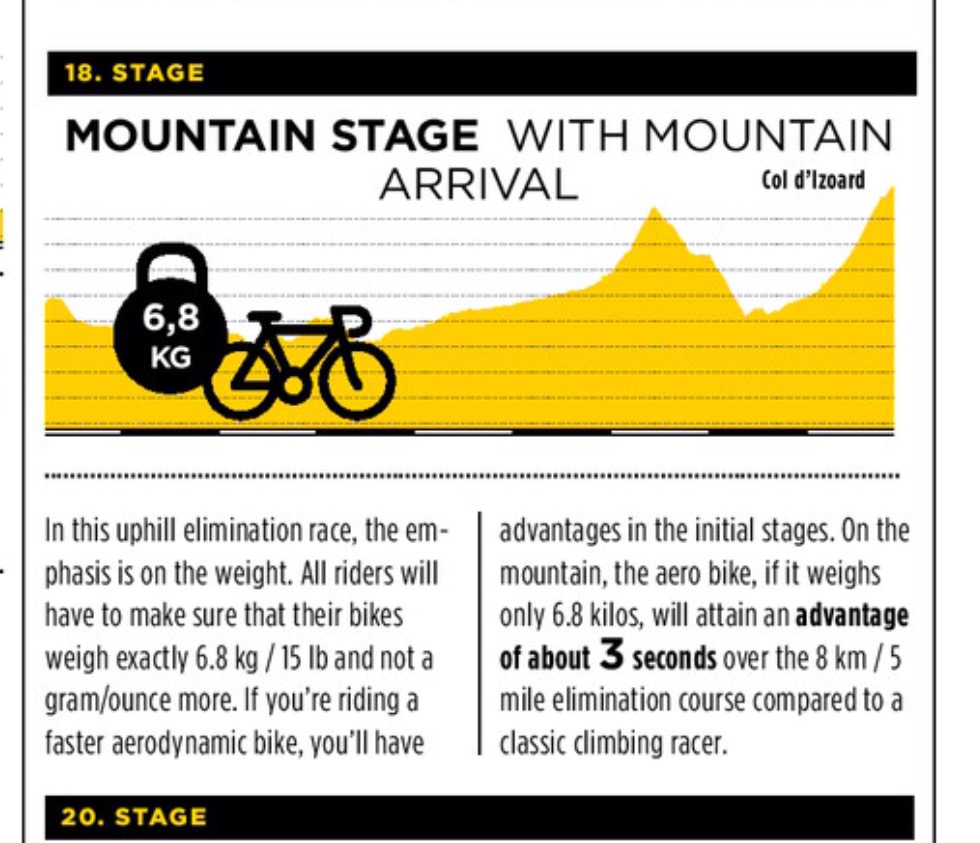 Les vélos feront tous 6.8 kg pour ce jour et à cette vitesse