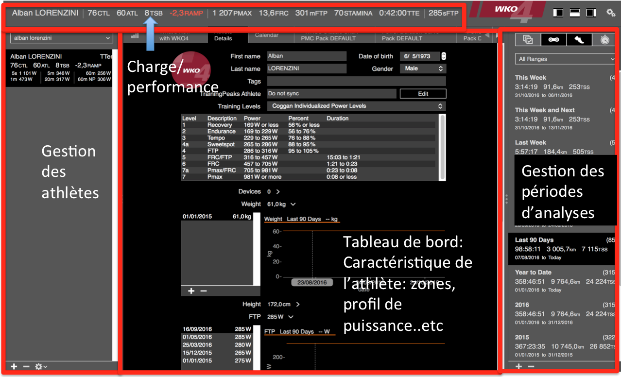 concernant l’entrainement et ses méthodologies avec l’utilisation du dernier soft d’analyse de Training Peaks : WKO4.