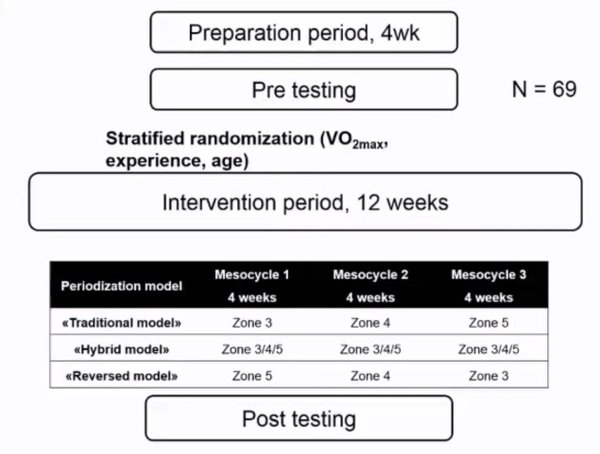 proposé ? On est sur un modèle de développement aérobie vers anaérobie soit endurance, rythme, FTP vers PMA, capacité lactique. Ce modèle semble donner de meilleurs résultats que la périodisation inversée comme déja démontré dans l’étude ci dessous mené par S.Seiler.