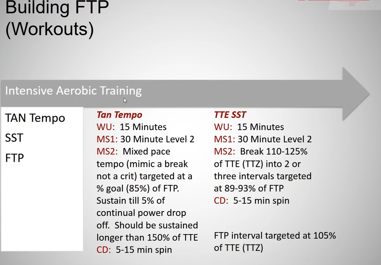 préparation aux objectifs en s’entrainant sur des effort au dessus de FTP, donc